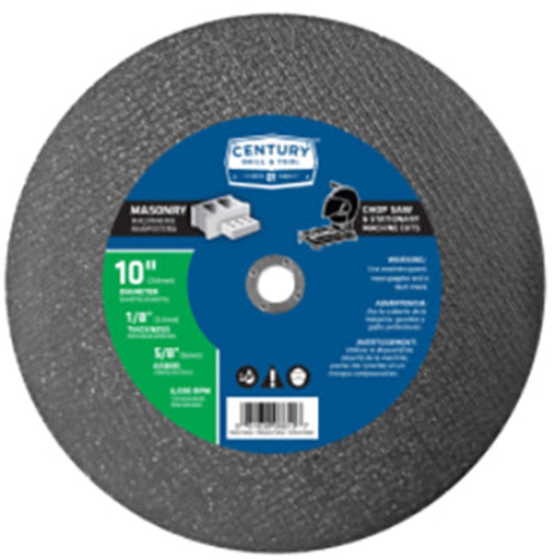Abrasive saw blades are made from premium resin bonded silicone carbide. Fiberglass reinforced for greater strength and safety. Handles the harder materials with a reduced chance of breakage. Size 10. Diameter 1/8. Thickness 5/8. Arbor type 1A. For Masonry