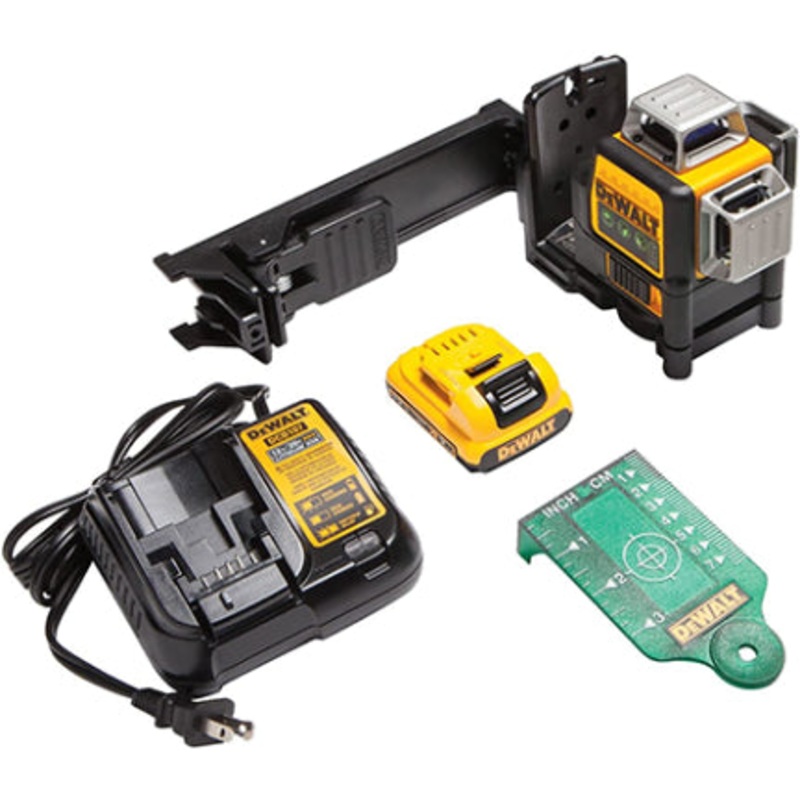 DEWALT laser level comes with 12V MAX lithium-ion rechargeable power tool battery platform. Laser level tool features green beam laser technology. DEWALT green laser level has integrated magnetic bracket with 1/4-inch and 5/8-inch thread. Full-time pulse m