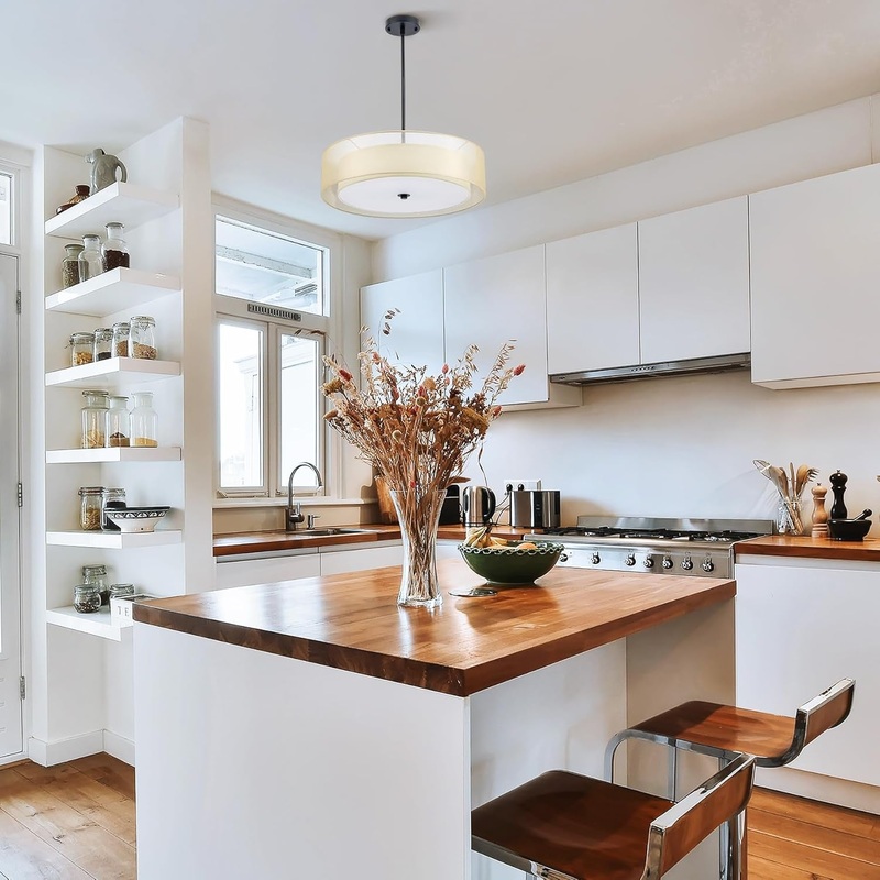 20" Black Drum Pendant Light 3-Light FabricAdd timeless elegance to your home with this 20-inch black drum pendant light. Featuring a sleek matte black frame and a stylish 2-layer fabric shade, it provides a soft and inviting glow.Elegant Drum Design: Comb