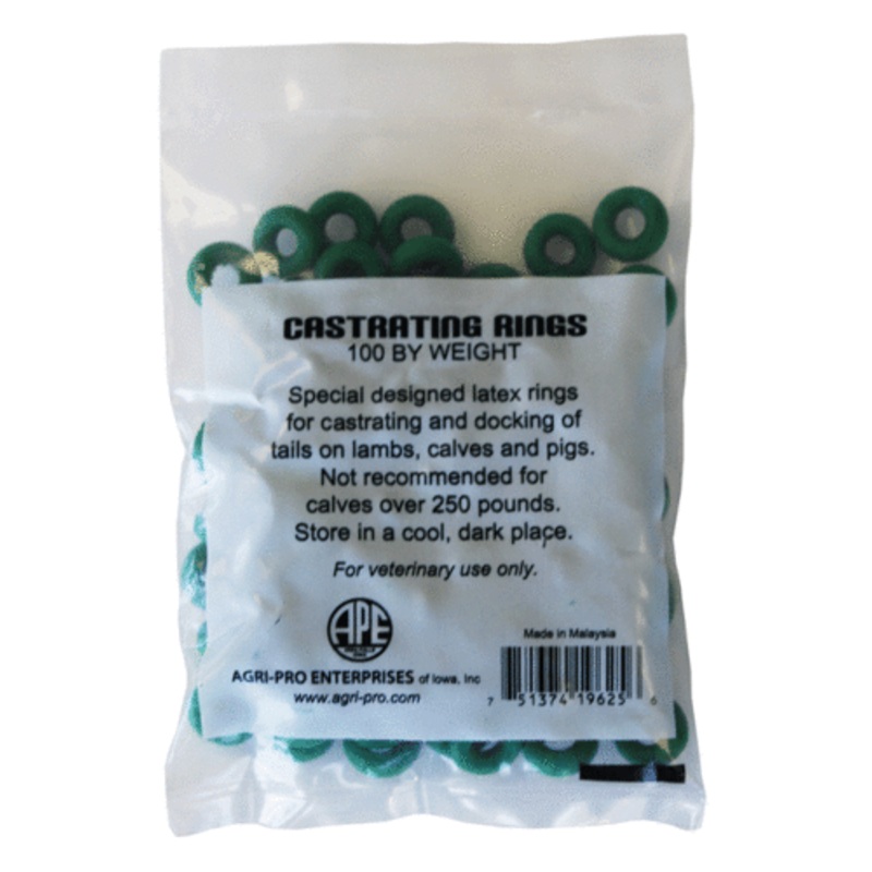 Castrating bands/rings are applied with a castrating band applicator for tail docking or castration. Made of premium Malaysian latex. Excellent pressure ratings and retention levels. Store in a cool, dark place.