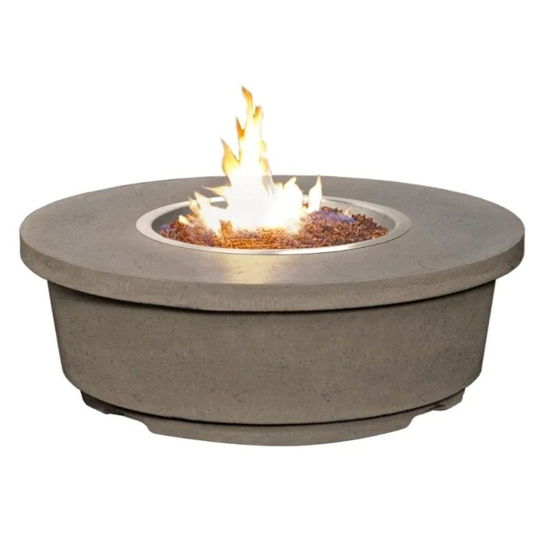 American Fyre Designs Reclaimed Wood Contempo Chat Height Fire Table, Roundprovides a high end gas fire pit table that can be customized to perfectly suit your needs. This unit features a glass fiber reinforced concrete construction to ensure a long lastin
