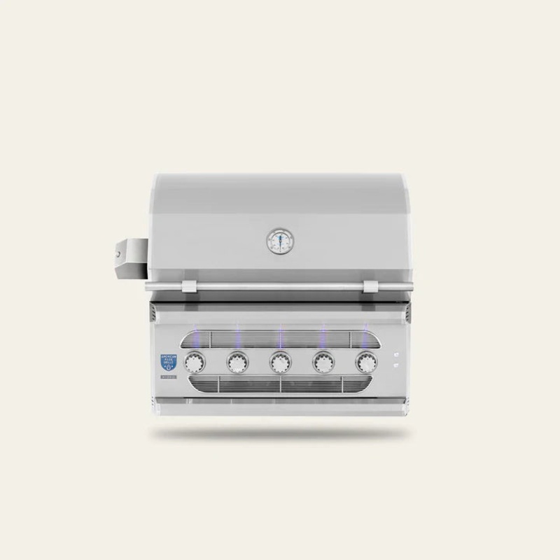 - Package Includes: Grill, Vinyl Grill Cover, Rotisserie Kit, Grate Lifting Tool, Stainless Steel Griddle, Drop-in Infrared Sear Burner, Fuel Kit (Wood & Charcoal), Care Kit & Leather Glove Kit