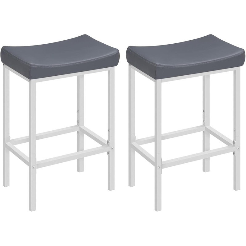Bar Stools, Set of 2 Bar Chairs, Counter Height Stools, Saddle Stools with Curved Surface, Kitchen Stools, 24.8 Inches, 2.4″ Thick Upholstery, for Kitchen, Dining Room, White and Gray WG10BY01 Gray + White 2