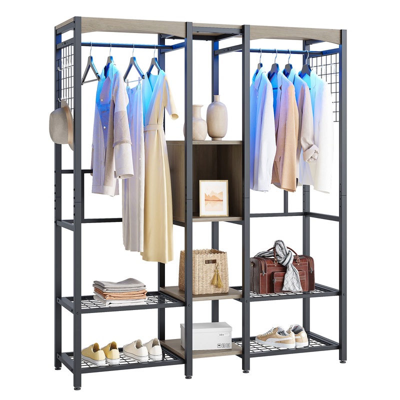 - Open-space designed freestanding wardrobe with multicolor, changing lights adds style and flare to your clothing organization