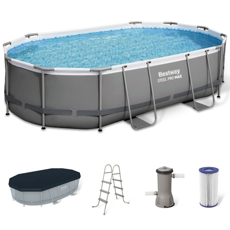 Bestway 16ft x 10ft x 42in Power Steel Above Ground Pool Set w/Pump (For Parts)