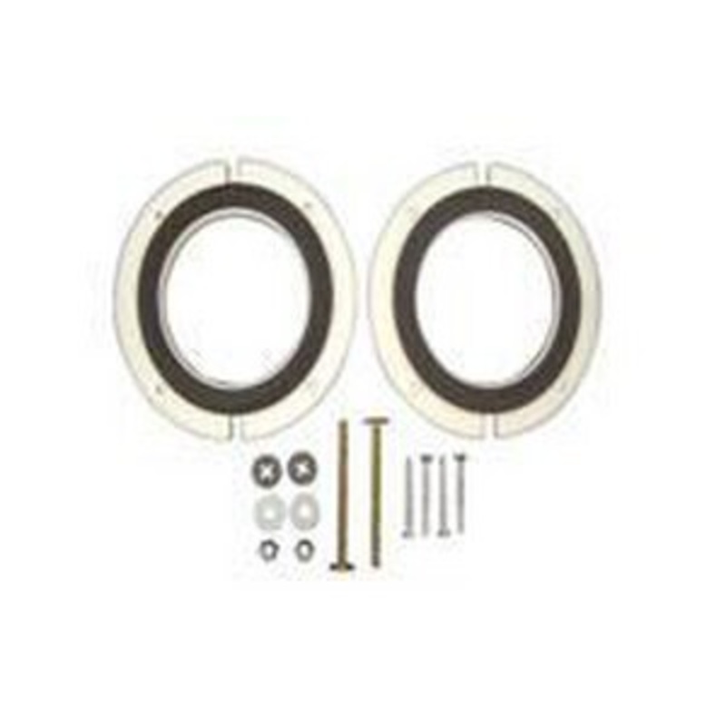 INCLUDES: 1PC- 1/2 FLANGE EXTENSION, 1PC- 1/4 FLANGE EXTENSION, 1 PAIR 3-1/2 BOLTS/ NUTS/ WASHERS AND FOUR WOOD SCREWS. THIS EXTENSION KIT IS USED FOR REPLACING, REPAIRING OR RETILING BATHROOM FLOOR.