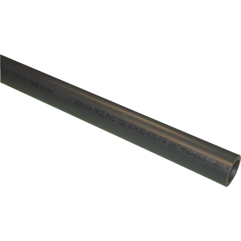 PVC Schedule 80 gray pressure pipe. 20' length. Plain end. Maximum working pressure: 400 psi at 73 F (degree Fahrenheit). Schedule 80 fittings are used with chemical processing, industrial plating, chilled water distribution, chemical drainage, and other h