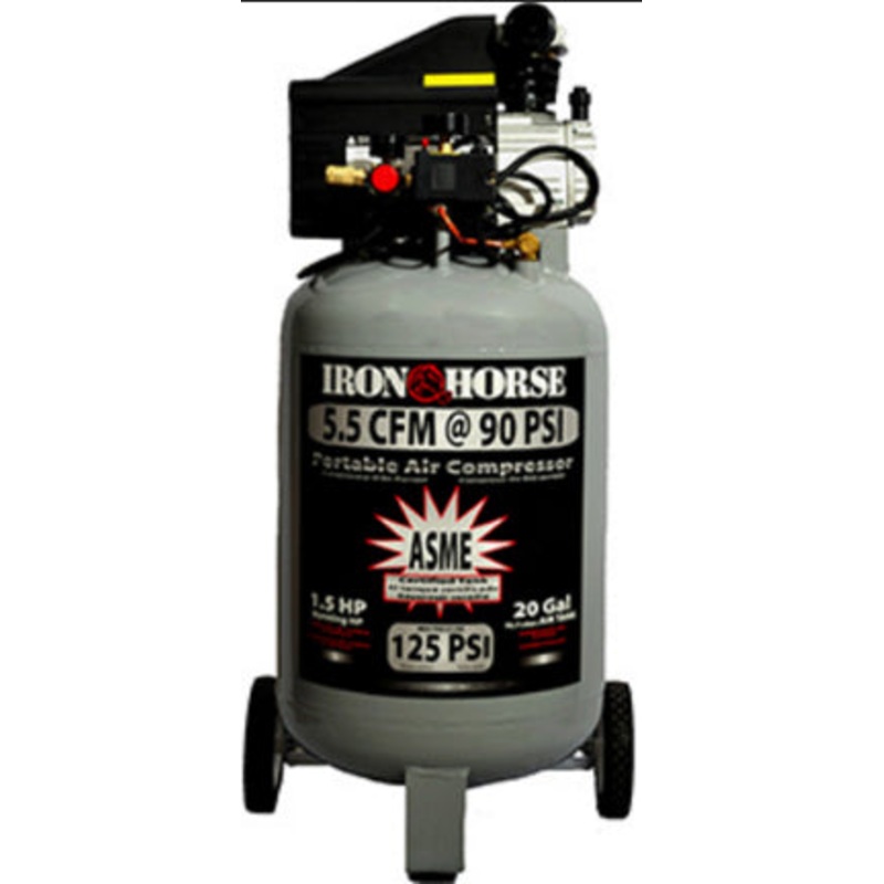 Compressor with cast iron cylinder comes with a large 20 gallon air tank providing maximum air capacity when needed. Oil lubricated for professional use and longer life powered by a thermally protected 1.5 HP, 115 volt electric motor. CSA/US approved.