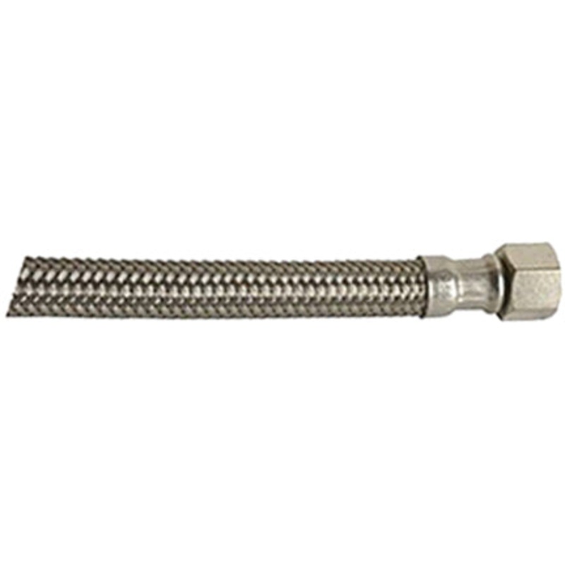 Stainless steel braid will not crimp and will stand up to chlorine chemicals. Requires no cutting, bending, or flaring, and installs without washers, rings, inserts, or sleeves. 3/8 compression x 1/2 IPS. For faucets. Bulk.