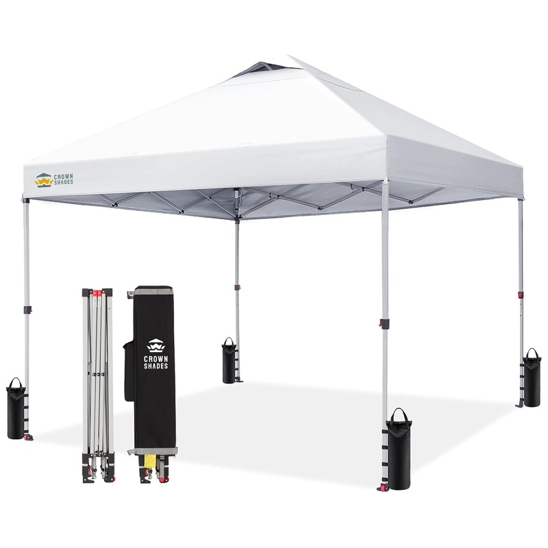 Crown Shades 10×10 Pop Up Canopy, Beach Tent w/One Push Setup, Grid White(Used)