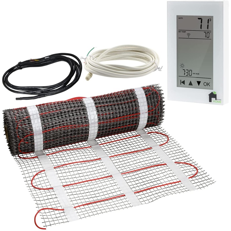 Each electric heating mat is fitted with a GFCI underfloor heating thermostat. It’s a WiFi-enabled tile heated floor system compatible with Google and Alexa for easier adjustments.