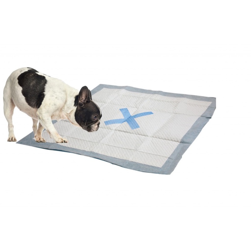 X Marks the Spot Super Absorbent Pee Pads feature five layers of absorbency, holds up to four cups of liquid and includes adhesive strips to keep the pad firmly in place. Scented pheromone X attracts dogs to the center of the pad to prevent leaks.