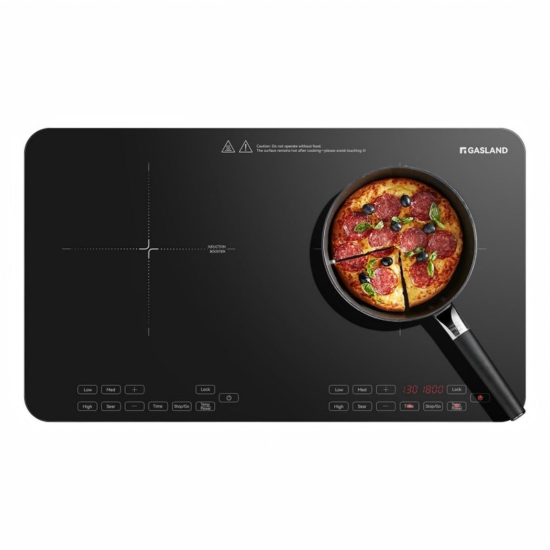 - Efficient Double Heating Zones– Portable 1800W induction cooktop with dual cooking zones, ideal for small families. Simmer on one side and boil on the other. Efficient, safe, and easy to clean. Perfect for modern kitchens or outdoor use.