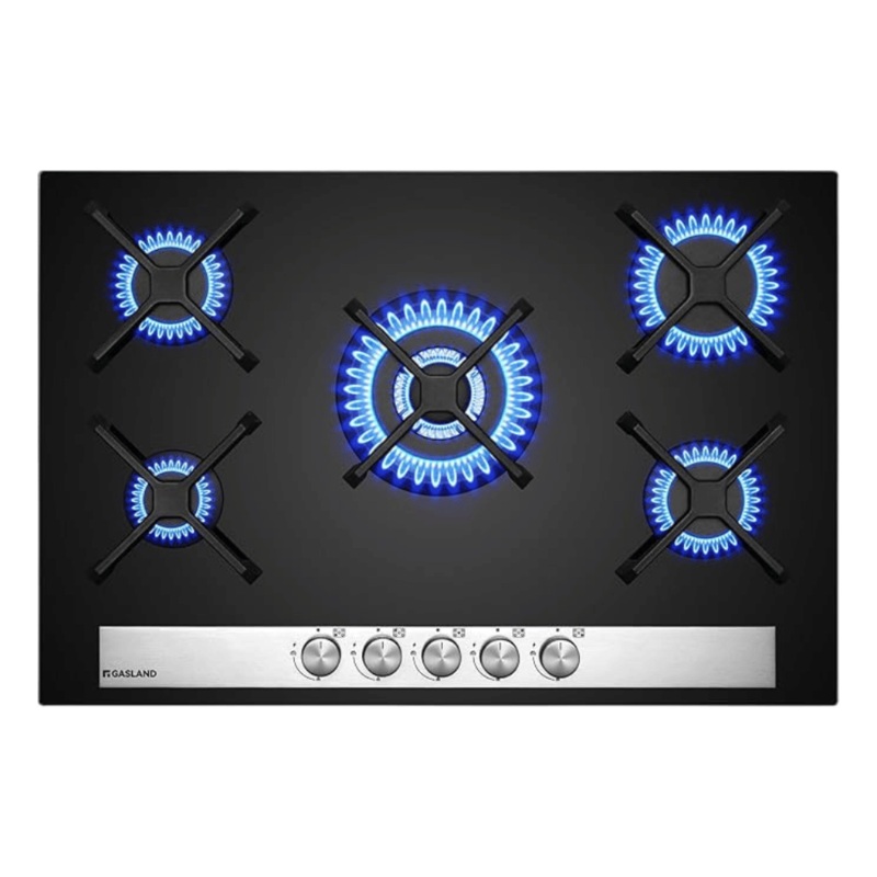 GASLAND Chef GH6805BG1FC Glas Gaskochfeld 5 Flammig, Gas Kochfeld mit Wok Brenner, Einbau Gaskochfelder, 76cm Schwarz Glasherd, Gas Kocher 10400 Watt, LPG/Erdgas