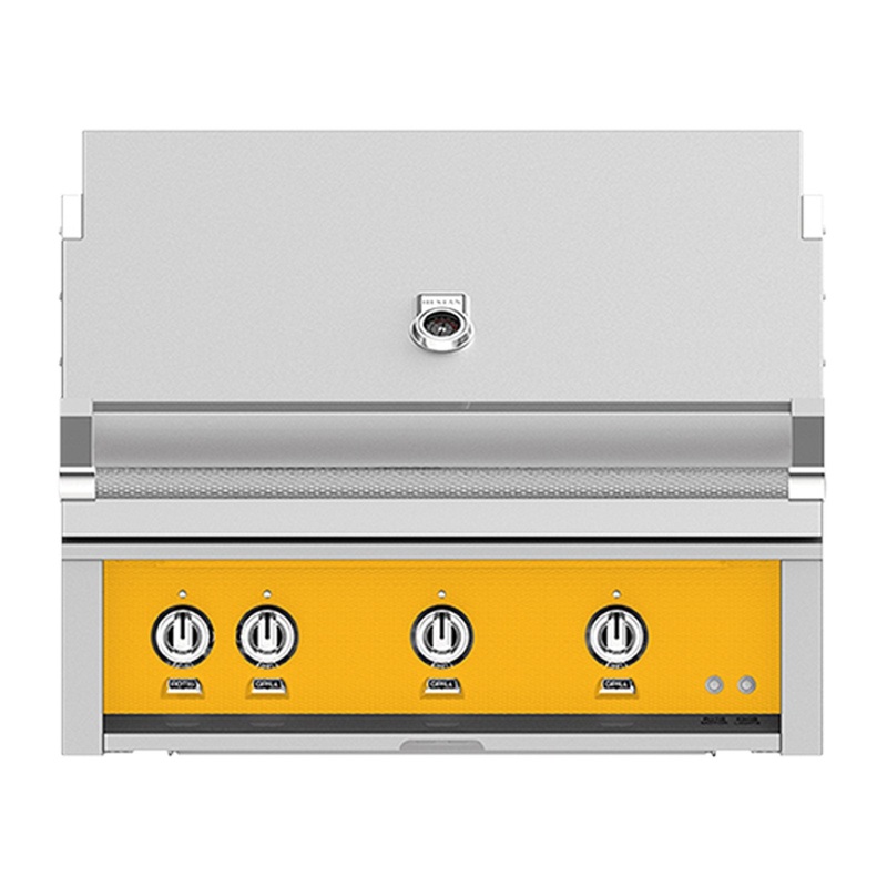Hestan 36-Inch Natural Gas Built-In Grill, 1 Sear – 2 Trellis w/Rotisserie in Yellow – GMBR36-NG-YW hestan-36builtingrills-master