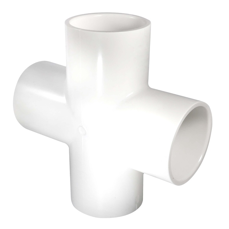 PVC Schedule 40 Crosses or 4-way fittings are comprised of three outlets and one inlet or vice versa. Socket-end solvent weld connections.