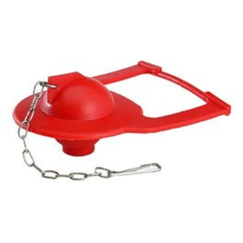 Kohler hinge flapper, fits oem #84995 & #1000490, red chlorazone material, shark fin design, stainless steel chain, fits Koehler 1 piece model toilets: san Raphael, rialto, & rosario. Carded.