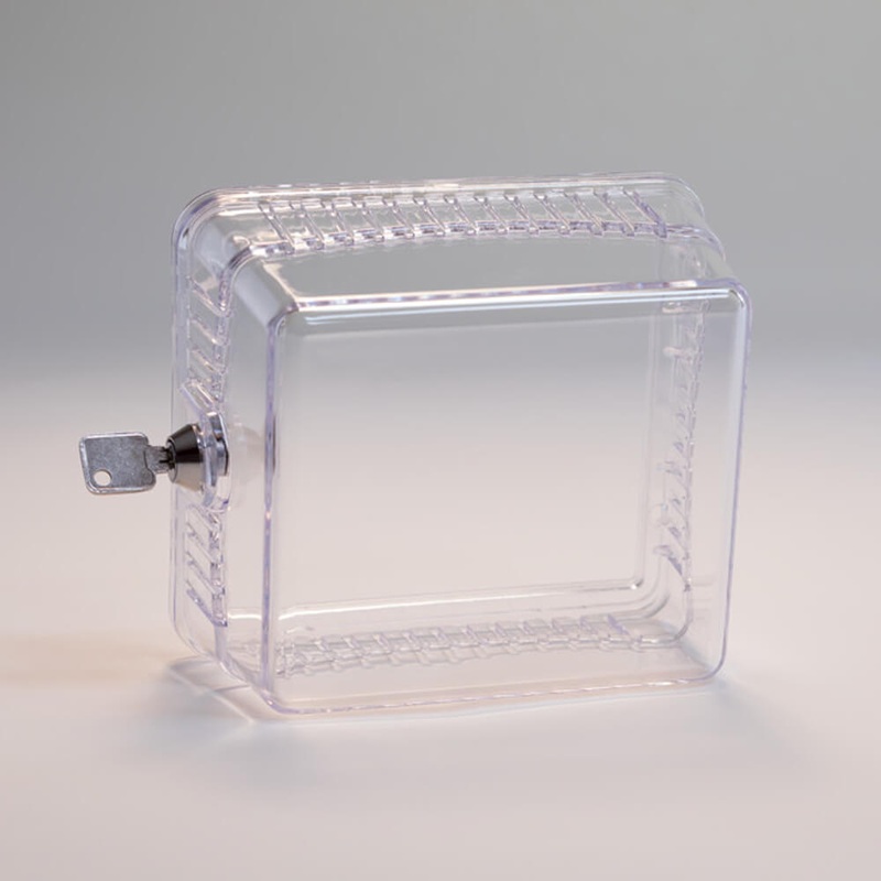 Whether your customer desires additional assurance or to deter tampering with settings, thermostat locking guards from LUX Products, provide the protection theyre looking for. Made of strong durable plastic, these guards come in two sizes to fit all thermostats. Perfect for the office or rental properties, LUX locking guards limit unwanted access and eliminate accidental fluctuations when someone bumps into the thermostat.