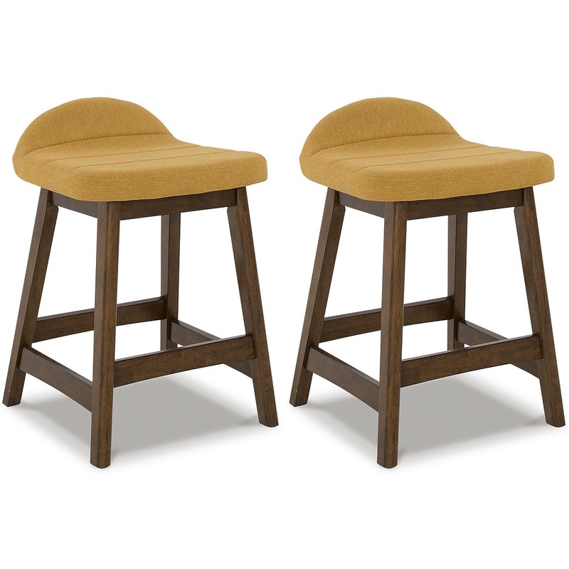 Lyncott Contemporary 28.5″ Counter Height Upholstered Bar Stool with Foam Cushion, 2 Count, Mustard & Brown Mustard Brown