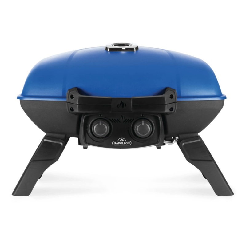 The Napoleon TravelQ 285 Portable Propane Gas Grill has set a new standard in portable grilling excellence. Don’t let the small size fool you; this grill boasts 285 square inches of total grilling area. That means you can grill up to 17 large hamburgers at once. Two, individually controlled burners provide precise temperature control. Smoke, and roast using indirect heat or sear perfectly over intense heat. You’ll know it’s a Napoleon with the iconic WAVE cooking grids for those distinctive sear marks. The porcelain coated enamel grids will season to a nonstick surface just like a cast iron frying pan. This grill features a cast aluminum body to keep it light and portable and the lid is a stylish blue. The legs fold in providing compact storage and a perfect perch. The removable grease tray slides out for easy cleaning and locks in place when you’re storing and traveling with the grill. Take gourmet grilling on the go with the TravelQ 285.