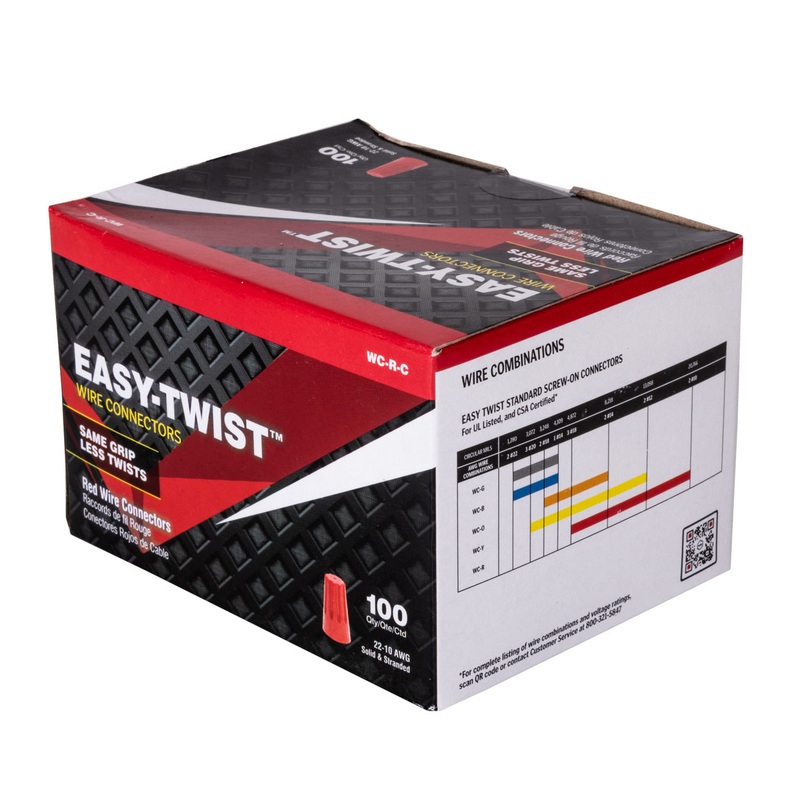 Easy-Twist wire connectors are the professional choice for forming quick, secure connections between wires in the field. The specialized spring design grips in fewer twists and the outside of the connector is ribbed to offer a comfortable grip.