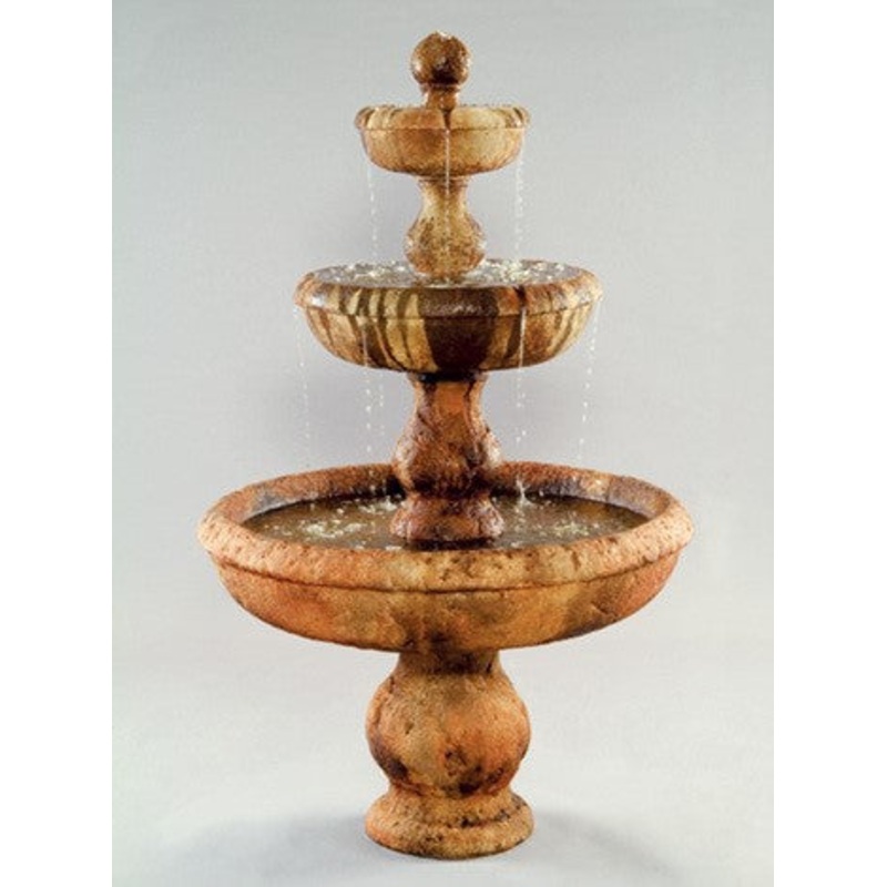 This outdoor fountain is available in 40 Different Finishes. Every finish is hand applied during the production process so color variation is expected. When the finish is applied to the water feature it is designed to replicate the look of naturally aged materials.