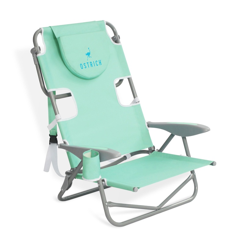 - Reclining beach chair is constructed with a lightweight aluminum frame that supports up to 325 pounds