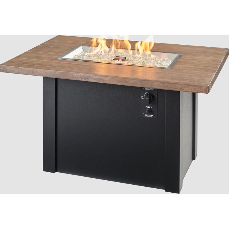 TheDriftwood Everblend topis uniquely hand-crafted, offering a variety of colors, textures, and patterns.Durable Materials: A robustgraphite weather-resistant powder-coated basesupports the structure.Illuminating Flame: Enjoy the vibrant flame from a12 x 24 burnerwith55,000 BTUs.Glass Top Details: Safety and design are enhanced with agrey glass burner cover.Adaptable Setup: Featuresadjustable feetfor stability on any terrain.Versatile Fuel Options: Designed forliquid propaneand convertible tonatural gas.User-Friendly Ignition: Comes with amanual ignition systemand an optionalelectronic Direct Spark Ignition.Concealed Storage: Asliding access doorhides a standard20 lb. propane tank.Exceptionally Made:UL safety certified, combiningUS and imported parts.Optional Accessories: Available accessories include aglass wind guard,protective cover, andfire media.