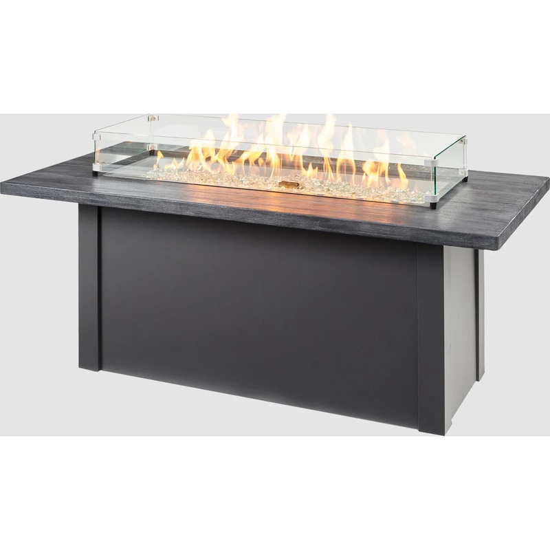 TheHavenwood Gas Fire Pit Tableboasts ahand-crafted Carbon Everblend top, each with unique colors and patterns, atop a durable, weather-resistantgraphite base. Experience vibrant flames with theCrystal Fire Plus Burner, delivering 65,000/80,000 BTUs (LP/NG) and enhanced by a grey glass burner cover for safety and style. Versatility shines withfuel options: liquid propane or natural gas via an included conversion kit. Stability on any terrain is assured withadjustable feet, while the concealed storage keeps a 20 lb. propane tank out of sight. The table is UL safety certified, reflecting exceptional craftsmanship and quality. For customization, optional accessories like a wind guard and protective cover are available to elevate your outdoor ambiance.