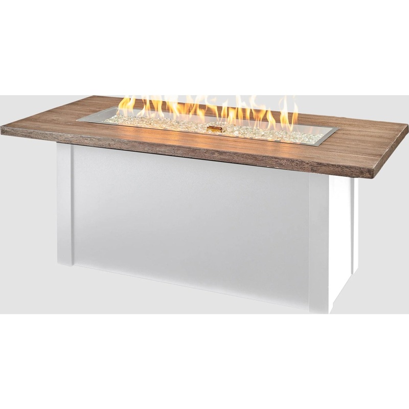 Outdoor Greatroom – 62W x 30’D – Havenwood Steel White Rectangular Driftwood Everblend Top Gas Fire Pit Table – Direct Spark Ignition Natural Gas