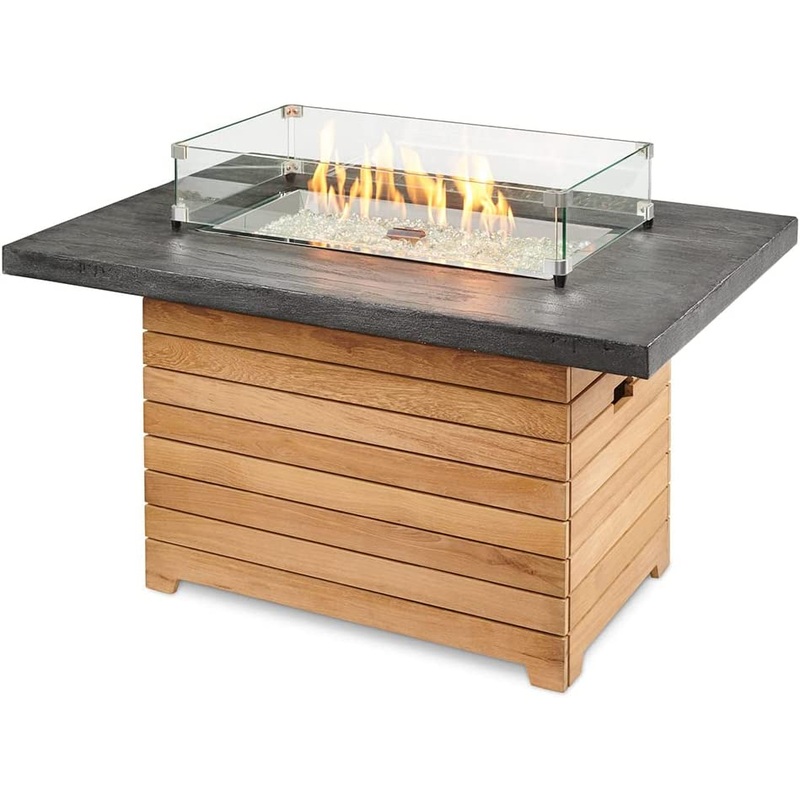 The Outdoor GreatRoom Company DAR-1224-EBG Darien Gas Fire Pit Table with Everblend Top and Teak Base, 44×30-Inchprovides a premium multipurpose fire feature for your patio space. Featuring an Everblend concrete top and a teak base, the Darien fire table offers heavy-duty construction for many years of outdoor use. The included 12-inch by 24-inch Crystal Fire Plus burner features 304 stainless steel construction for ultimate durability while offering a heat output of 55,000 BTU and an impressive flame presence. The base of this unit features storage for a 20-pound propane tank with a built-in access door, while an included burner cover protects your burner when not in use.