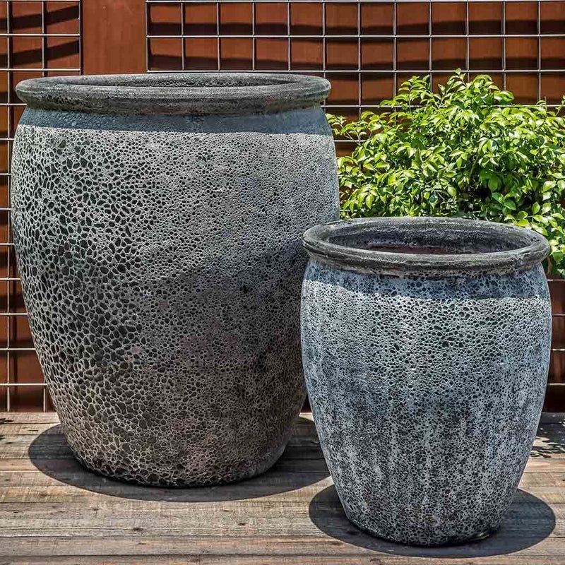 Campanias Angkor Collection is a more colorful interpretation of our Aegean texture. This distinctive 2-step glazing technique creates artifact-like planters with rich textural appeal.