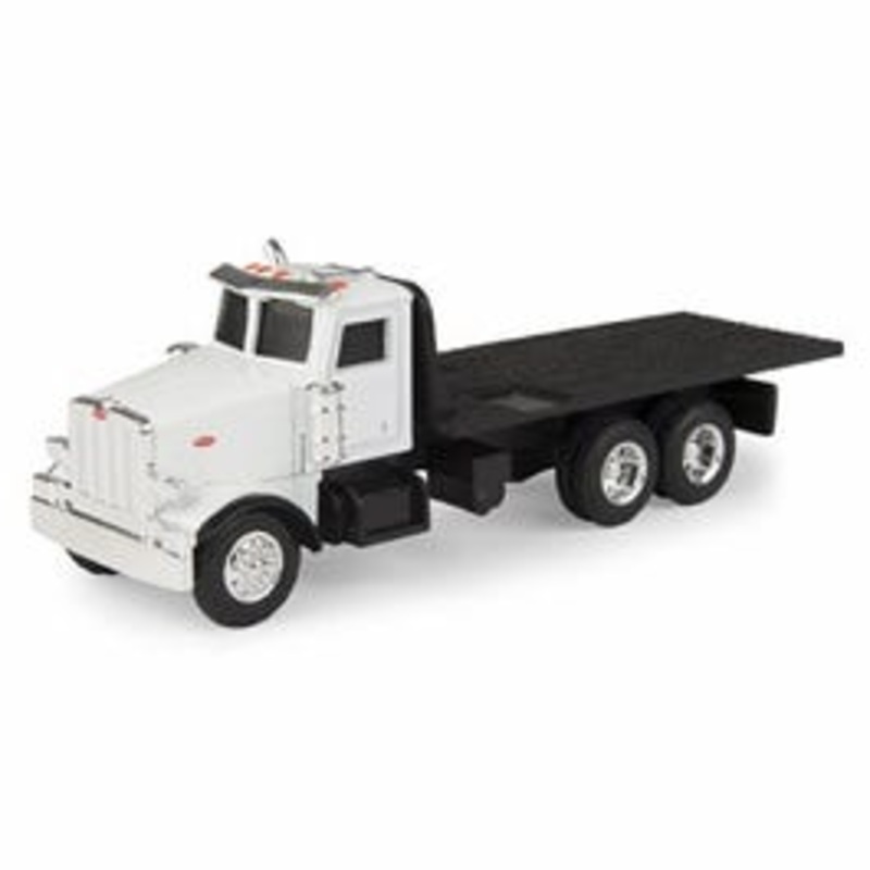 Tomy, 1:64 Scale, Peterbilt Flatbed Truck, Constructed of durable plastic with die cast chassis, Features Free Rolling Wheels, Can haul a load on the back, Recommended for Ages 3+.
