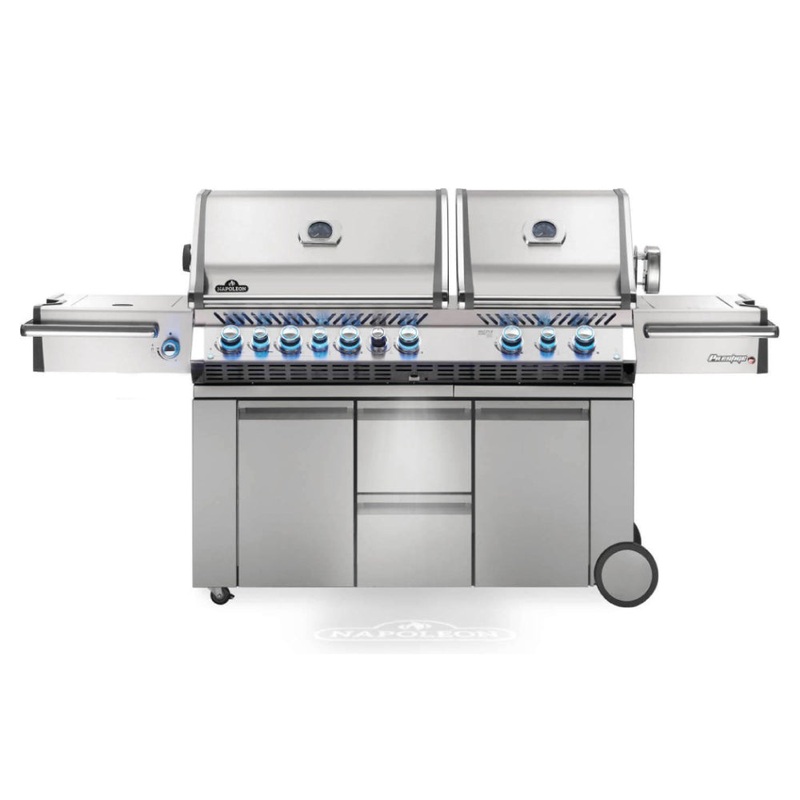 Napoleon's Prestige PRO 825 Natural Gas Grill with a Power Side Burner and Infrared Rear and Bottom Burners proves that two heads are better than one. On the outside, a shining stainless steel body provides durability against the elements while chrome deta