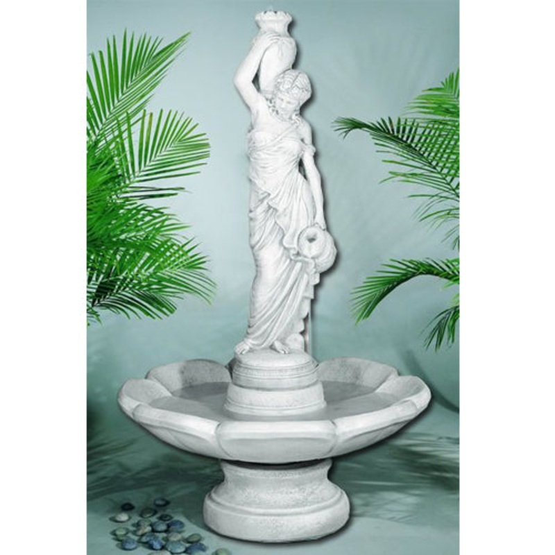 Add tranquility into your garden with the Rebecca At Well Fountain in Petal Bowl. This piece stands a little over 6 feet tall featuring Rebecca standing in the middle of the petal bowl, pouring water into it.