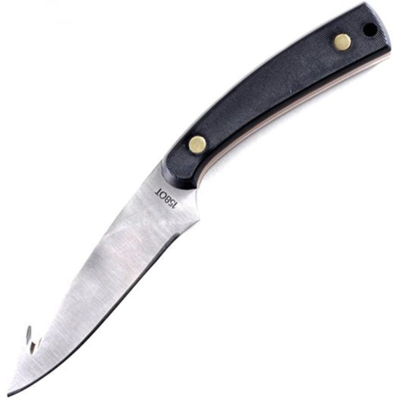 The mark of a true professional, a guthook is a must for any hunter who plans on dressing game themselves in the field. With the precision-ground Schrade Old Timer 158OT Guthook Hunting Knife you can effortlessly process hide and body cavities on-the-spot, keeping meat clean and hairless and impressing a mark of craft on your work. Made from high-carbon stainless steel with a Acetal Resin handle, the 1580T also comes with a handsome full-grain leather sheath. A ready companion for sensational hunting, the Old Timer is one of the best hunting tools, period.