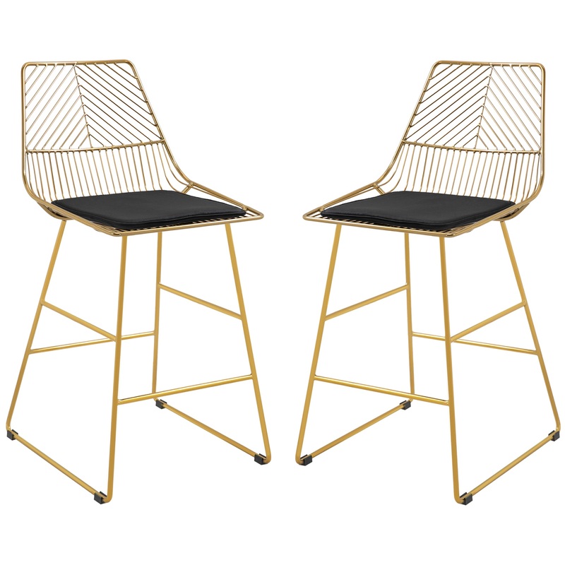 Set of 2 Bar stools Modern Counter Height Wire Metal Bar chairs for Kitchen, Bar Counter, Gold