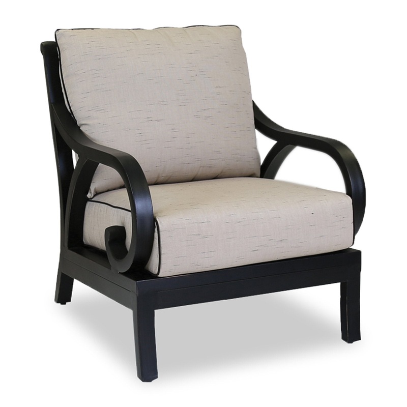 Sunset West Monterey Club Chair With Old World Copper Rub Frame And Sunbrella Fabric Cushions In Frequency Sand With Contrasting Walnut Welt Stitching – 3001-21