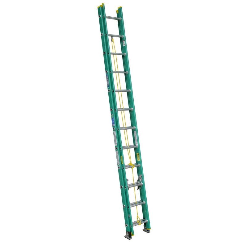 The D5924-2 24ft Fiberglass Extension Ladders feature a rounded rail for improved ergonomics while climbing and carrying. The Traction-Tred D rungs are slip-resistant and the side rails are interlocking. The rail shields protect the bottom of the rail and the SHU-LOK shoe pivots easily for use on hard or penetrable surfaces. The exclusive Alflo rung joint guarantees Twist-Proof performance.