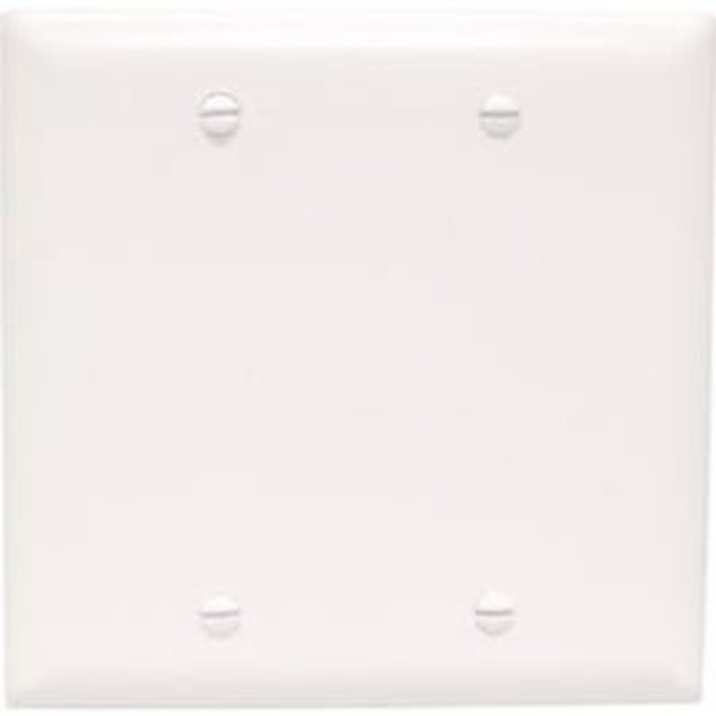 White, 2 Gang, Blank, Nylon Wall Plate, UL, CSA, 3/16" Taller & Wider That Standard Size Wall Plate For Better Coverage, Molded Of Rugged Practically Indestructible Self Extinguishing Nylon, 4.75" x 4.6875", Cello Wrap.